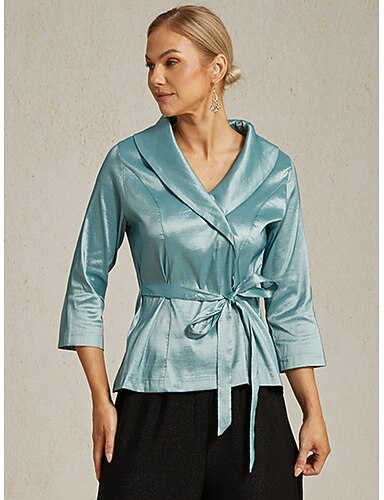 Per donna Blusa Top da sera Nodo frontale Elegante Metallico Moderno Manica 3/4 Scollo a V Top Regolari Festa serale Ospite di nozze Semi-Formale Blu turchese Primavera, Autunno, Inverno, Estate