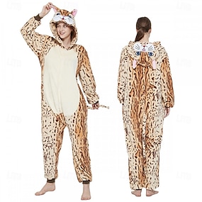 Costume di Carnevale Pigiama Kigurumi Costume di Gruppo Costume tutina Fantasia animale Leopardo Caldo Comodo Con cappuccio Pile Adulti Per uomo Per donna Unisex Halloween Carnevale Feste Performance