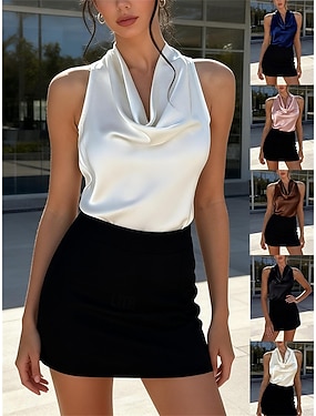 Per donna Top estivi Blusa Top Eleganti Arricciato Patchwork Drappeggiato Semplice Elegante Signore Sexy Senza Maniche Scollo a Cascata Top Regolari Quotidiano Lavoro Ferie Blu Nero Bianco Rosa