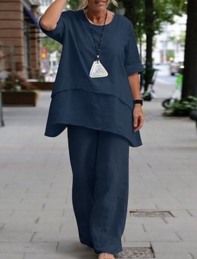 Per donna Camicia Camicie di cotone e lino Set di biancheria Set 2 Pezzi Tinta unica Moda Casual Girocollo Quotidiano Streetwear Blu Bianco Cachi Grigio Estate Primavera Autunno Primavera & Autunno