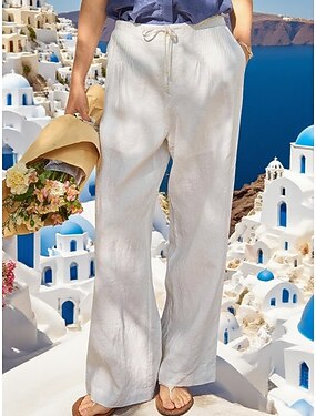 Per donna Pantaloni in cotone e lino Gamba larga Chinos Pantaloni Estivi Vacanza Essenziale Casual Lunghezza intera Vita Alta Semplice Comodo Comodità Morbido Inelastico Quotidiano All'aperto Vacanza