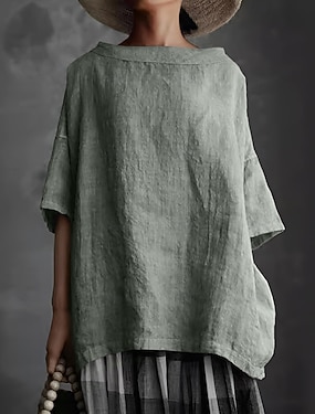 Per donna Camicia Camicie di cotone e lino Set di biancheria Set 2 Pezzi Tinta unica Moda Casual Girocollo Quotidiano Streetwear Blu Bianco Cachi Grigio Estate Primavera Autunno Primavera & Autunno