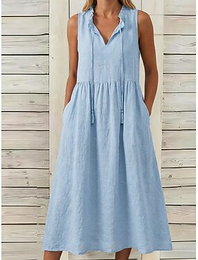 Per donna Abito maxi Finto cotone e lino Abito a Tubino Vestito Estivo Essenziale Casual Quotidiano Vacanza Vestibilità regolare Semplice Senza Maniche Scollo a V Rosa Azzurro Estate