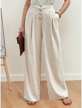 Per donna Finto cotone e lino Gamba larga Chinos Pantaloni Estivi Vacanza Moda Streetwear Lunghezza intera Vita Alta Semplice Tasca Comodo Morbido Confortevole Inelastico All'aperto Streetwear