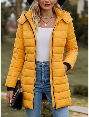 Per donna Cappotto Invernale Giacca Piumino Giacca con Cappuccio Caldo Confortevole Cerniera Tasca Collo in Pelliccia Casual Semplice Vacanza Abbigliamento quotidiano Uscire Weekend Lungo Con