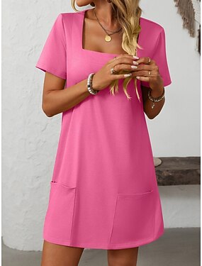 Per donna Mini Abito Finto cotone e lino Abito a Tubino Vestito Casual Abito Estivo Elegante Moda Moderno All'aperto Vacanza Uscire Vestibilità regolare Semplice Manica Corta Collo quadrato Nero Rosa