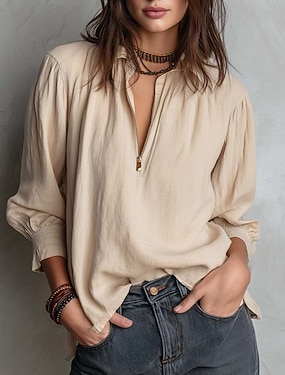 Per donna Misto cotone Blusa Bottoni Semplice Essenziale Moderno Manica 3/4 Scollo a V Top Regolari Quotidiano Ferie Uscire Nero Bianco Rosa Marrone Albicocca Estate