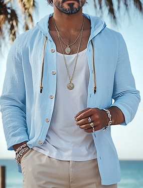 Per uomo Camicia Camicia di lino Abbigliamento da spiaggia Camicia con Bottoni Camicia con cappuccio Semplice Vacanza Casuale Nero Bianco Blu Verde Manica Lunga Con Cappuccio Estate Primavera & Estate