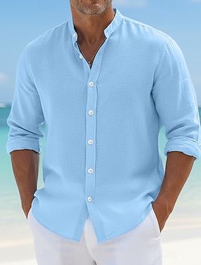 Per uomo Camicia Camicia con colletto a fascia Camicia estiva Abbigliamento mare Maglietta informale Camicia con bottoni Tinta unica Da mare Curise Nero Bianco Rosa Blu Manica lunga Colletto