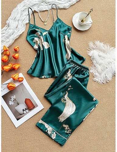 Per donna Abbigliamento da Casa Set Pigiama Moda Casual Grafico Elastico in vita Pantalone Casa Vacanza Senza Maniche Spalline Verde Estate Primavera Vestibilità regolare