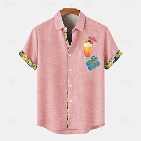 Per uomo Camicia di lino Camicia Estiva Abbigliamento da spiaggia Camicia con Bottoni Palma Vacanza Ferie Rosa Manica Corta Collo ripiegato Estate Primavera Abbigliamento