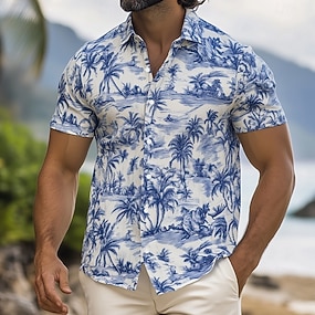 Per uomo Albero di Cocco Piante Tropicali Camicia hawaiana estiva Camicia con Bottoni Camicia Aloha Manica Corta Hawaiano Vacanza Ferie Abbigliamento mare Estate Primavera Collo ripiegato Stampa 3D