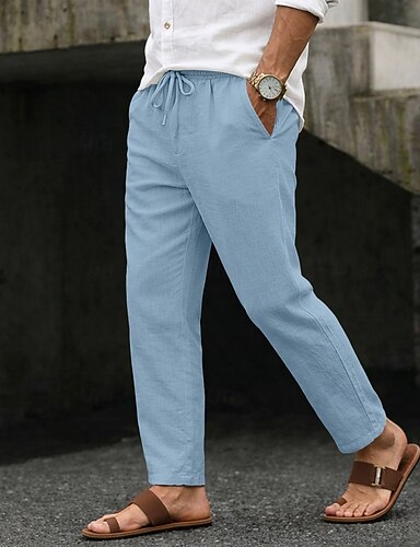 Per uomo Pantaloni Estivi Pantaloni da Spiaggia Coulisse Tasca Elastico in vita Semplice Comodità Traspirante Lunghezza intera Quotidiano Spiaggia Vacanza Vacanza Hawaiano Blu Nero Inelastico