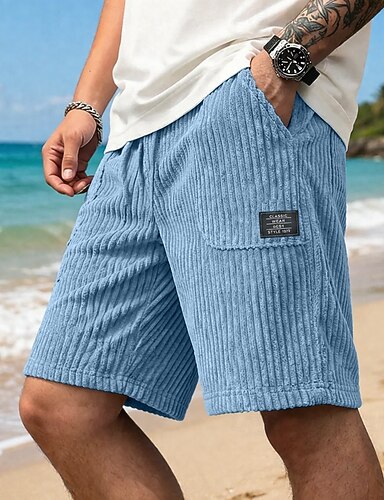 Per uomo Shorts Pantaloncini casual Pantaloncini di velluto a coste Tasca Elastico in vita Semplice Testurizzato Comodità Traspirante Lunghezza al ginocchio Casuale All'aperto Spiaggia Vacanza Moda