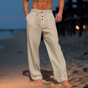 Per uomo Pantaloni di lino Pantaloni Pantaloni estivi Pantaloni da spiaggia A cordoncino Vita elastica Plissettato Liscio Comfort Traspirante Informale Giornaliero Per eventi Di tendenza Classico