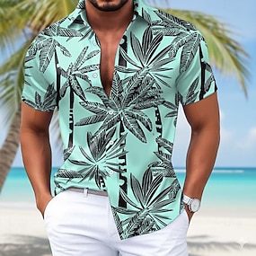 Per uomo Albero di Cocco Natura e paesaggi Piante Tropicali Camicia hawaiana estiva Camicia con Bottoni Camicia Aloha Manica Corta Hawaiano Casuale Vacanza Estate Primavera Collo ripiegato Stampa 3D