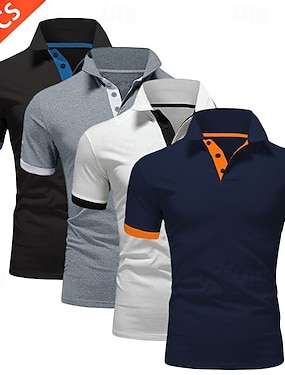 Per uomo Polo Maglia da golf Casuale Sportivo Bavero Manica Corta Moda Essenziale Blocco di colori Patchwork 4 pezzi Estate Vestibilità regolare Bianco (4 confezioni) Nero (4 confezioni