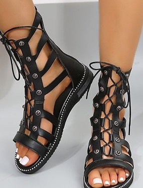 sandali gladiatore neri da donna con lacci e design ritagliato - sandali bassi eleganti per l'estate, i festival e l'abbigliamento da spiaggia