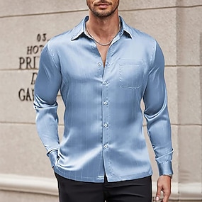 Per uomo Camicia Camicia in raso Camicia elegante Camicia con Bottoni Camicia da Ballo A righe Affari Matrimonio Blu chiaro Nero Bianco Vino Manica Lunga Colletto a Camicia Tutte le stagioni