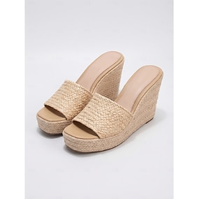 Sandali con zeppa intrecciati color kaki naturale da donna - espadrillas con plateau e texture in paglia intrecciata per vacanze all'aperto e resort al mare &viaggi estivi