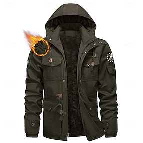 Per uomo 1776 Giacca in Pile Giacca Cargo Giacca a vento Calore Termico Casual Militare All'aperto Campeggio & Escursionismo Ricamato Cappuccio Rimovibile Con cappuccio Inverno Collo alla coreana