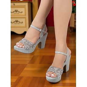 sandali da donna con tacco a blocco e plateau glitterati - scarpe da festa scintillanti con punta aperta e cinturino alla caviglia per la vita notturna e l'abbigliamento da discoteca delle donne