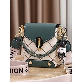 mini borsa a tracolla alla moda da donna con motivo a quadri e ciondolo a forma di orso, tracolla a catena e design colorblock: perfetta per le uscite informali e l'uso quotidiano giallo terra nero
