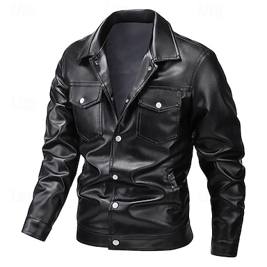 Per maschio Giacca in Ecopelle Giacca di transizione Giacca da Biker Abbigliamento da Esterno Casual Quotidiano Antivento Bottoni Autunno & Inverno Cerniera Casual Girocollo Regolare Finta pelle
