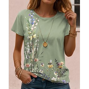 Per donna Maglietta Stampato Floreale Grafico Piante Vintage Elegante Classico Manica Corta Girocollo Top Regolari Quotidiano Bianco / blu Rosa Verde Estate Primavera Autunno