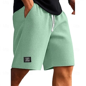 Per uomo Pantaloncini Waffle Pantaloncini Estivi Shorts da Spiaggia Pantaloncini casual Coulisse Elastico in vita Tinta unica Comodità Lunghezza al ginocchio Quotidiano All'aperto Abbigliamento