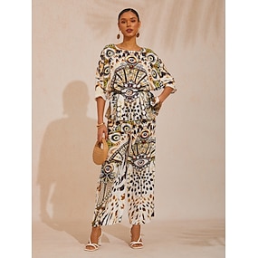 abito lungo da vacanza con coulisse e stampa folk loose