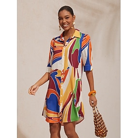 Per donna Vestito a ruota Abito Stampato Abito Largo Abito maxi Arancione Mezze maniche Con onde Stampa Lungo Primavera & Estate Scollo a V Casual Quotidiano Spiaggia S M L