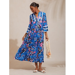 Per donna Abito Stampato Abito Midi Abito Midi Verde Raglansleev Fiori / Piante Stampa Primavera & Estate A barca Spiaggia Vacanza S M L