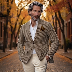 Per uomo Giacca blazer Giacca Sportiva Colletto ad incastro Moda Casual Pied-de-poule Blazer Marrone Vestibilità su misura Monopetto Due Bottoni