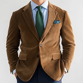 Per uomo Giacca in Velluto a Coste Colletto ad incastro Moda Classico Casual Tinta unita Blazer Marrone Kaki Blu scuro Vestibilità su misura Monopetto Due Bottoni