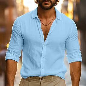 Per uomo Camicia Camicia in lino e cotone Camicia in cotone bianco Camicia estiva Camicia da spiaggia Liscio Hawaiano Per eventi Nero Bianco Blu Cachi Manica lunga Bavero Primavera estate