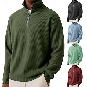 Per uomo Magliette Polo a Nido d'Ape Testurizzato Casuale All'aperto Zip a un quarto Manica Lunga Moda Moderno Tinta unica Testurizzato Lavorato a maglia Primavera & Autunno Tutte le stagioni