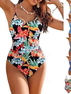 Per donna Costumi da bagno Intero Monokini Costume da bagno Controllo della Pancia Vita alta Snello Senza schiena Vacanza Abbigliamento da Spiaggia Floreale Scollo a Cucchiaio Senza Maniche Costumi