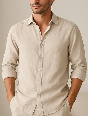 Per uomo Camicia camicia di lino Camicia in lino e cotone Camicia estiva Camicia da spiaggia Camicia con bottoni Liscio Informale Giornaliero Nero Bianco Blu Cachi Manica lunga Collo ripiegabile