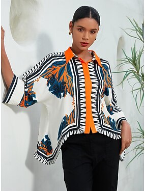 Per donna Camicia Boho Camicia in raso di seta Vacanza Casual Quotidiano Arancione Stampa Manica Lunga Bohemien Casual Quotidiano Colletto a Camicia Primavera & Autunno Interstagionale