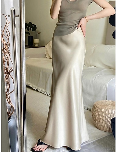 Per donna Gonne in raso Elegante Moda Maxi Vita Alta Gonne Tinta unita Quotidiano Streetwear Nero Bianco Cachi Estate Raso