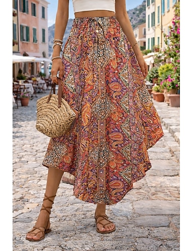 Per donna Gonna da vacanza Elegante Bohemien Moda Casual Midi Vita media Gonne Grafico Paisley Coulisse Elastico in vita Orlo irregolare Inelastico Quotidiano Vacanza Blu Nero Bianco Giallo Estate