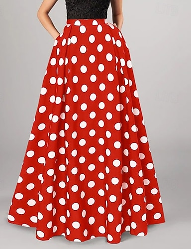 Per donna Moda Casual Maxi Vita Alta Gonne A Pois Tasca Micro-elastico Quotidiano Streetwear Nero Rosso Blu scuro Estate Poliestere