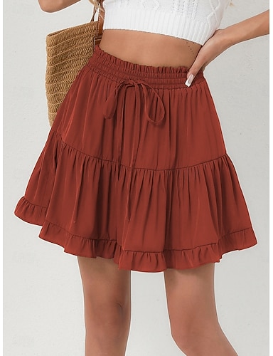 Per donna Gonna da vacanza Moda Casual Mini Vita Alta Gonne Semplice Coulisse Volant Elasticizzato Quotidiano Streetwear Nero Bianco Arancione Marrone Estate Poliestere