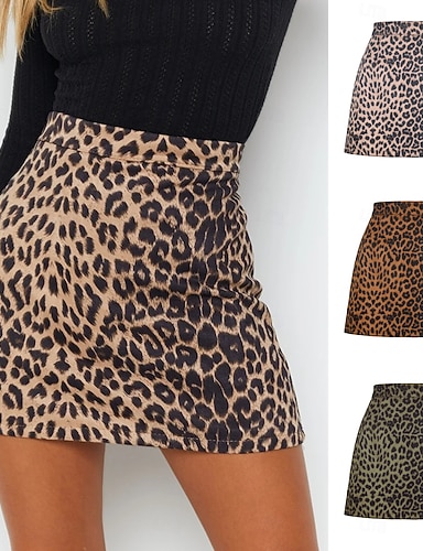 Per donna Gonna in finta pelle scamosciata Moda Casual Mini Vita Alta Gonne Leopardo Stampato Micro-elastico Quotidiano Streetwear Marrone Verde Beige Primavera Pelle scamosciata Poliestere