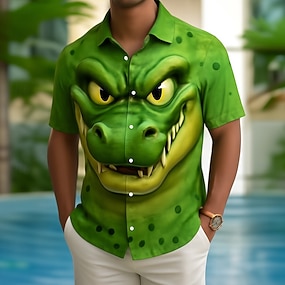 Per uomo Animale Coccodrillo Fantasia "Cartone 3D" Camicia Camicia con Bottoni Manica Corta Divertente All'aperto Ferie Estate Primavera Collo ripiegato Stampa 3D camicie con colletto Verde Cachi