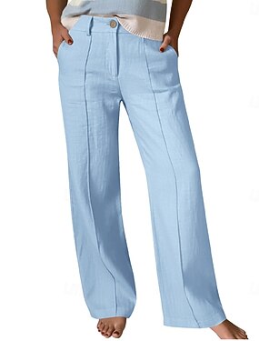 Per donna Finto cotone e lino Pantaloni Pantaloni Estivi Pantaloni da Spiaggia Vacanza Moda Essenziale Lunghezza intera Vita Alta Semplice Tasca Gamba Dritta Comodità All'aperto Micro-elastico