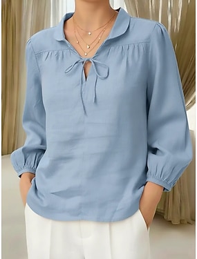 Per donna Blusa Finto cotone e lino Tinta unica Elegante Casual Manica 3/4 Scollo a V Top Regolari Quotidiano Nero Bianco Rosa Verde Albicocca Estate Primavera