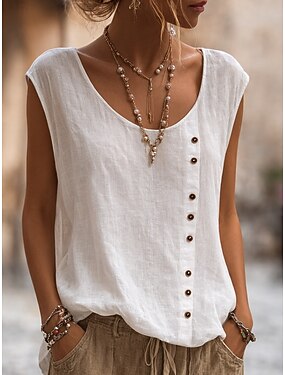 Per donna Maglietta Camicia in finto lino Bottoni Semplice Moda Elegante Classico Senza Maniche Girocollo Top Regolari Quotidiano Uscire Weekend Blu Nero Bianco Verde militare Estate Primavera
