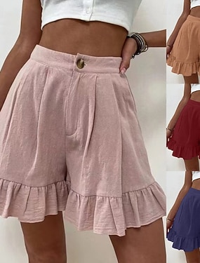Per donna Misto cotone Finto cotone e lino Shorts Pantaloni Eleganti Casual Corto Naturale Semplice Fibbia Comodo All'aperto Vacanza Uscire Magenta scuro Vinaccia Blu cielo chiaro Bianco Estate